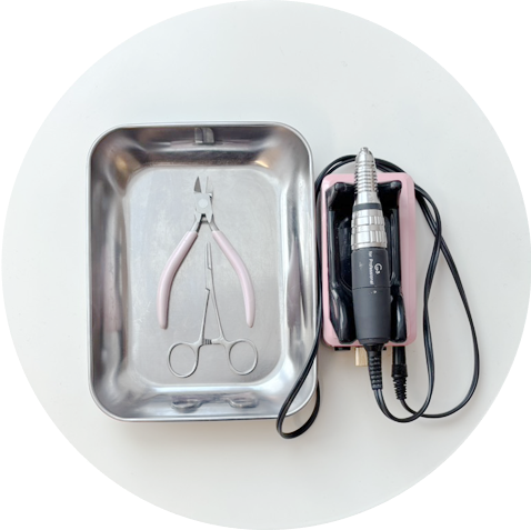 たった一種類の器具で様々な状態の爪に対応でき、作業に使う揃える道具も業界最少。